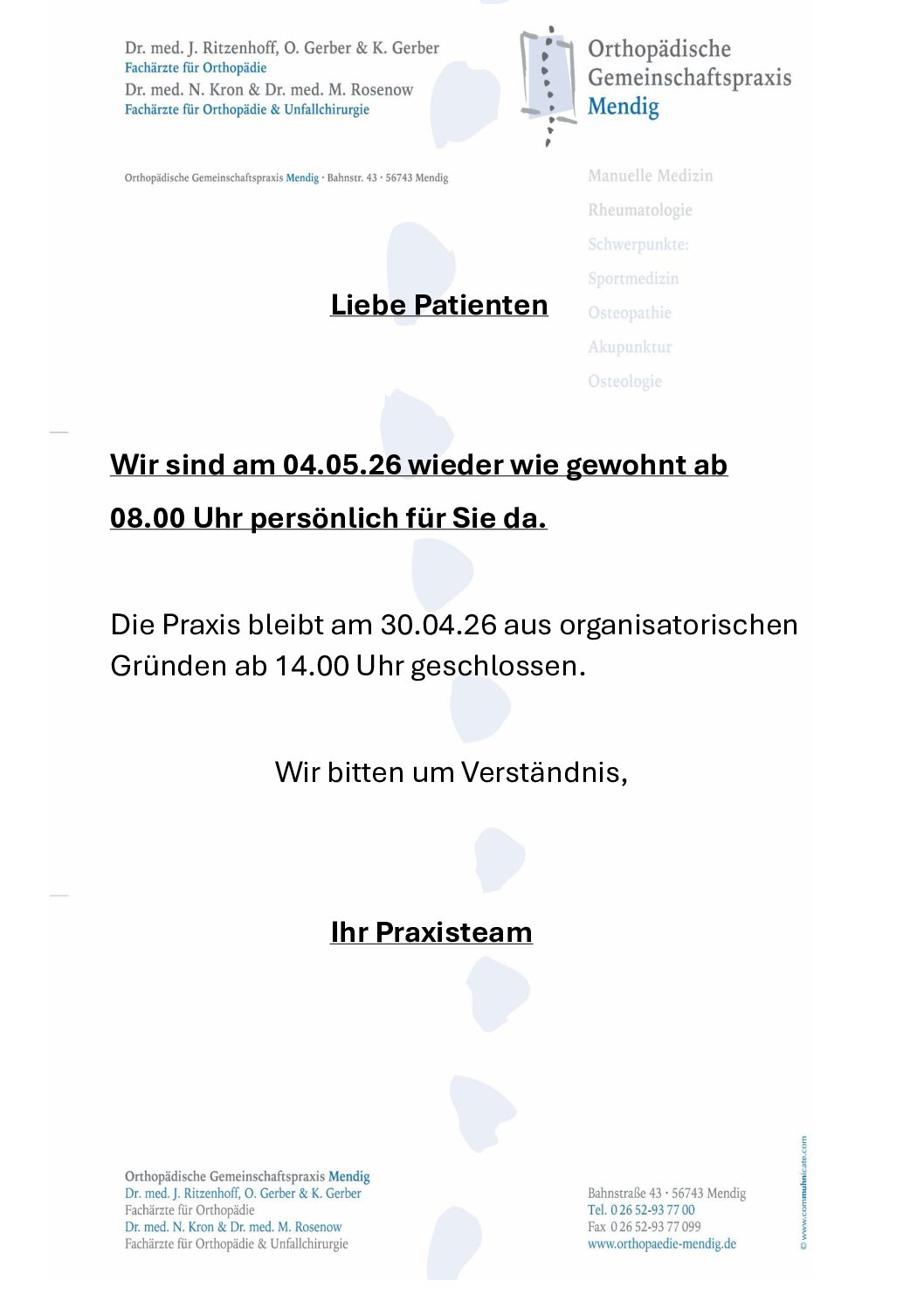 Kontakt : Vereinbaren Sie einen Termin unter Telefon 02652 937700
